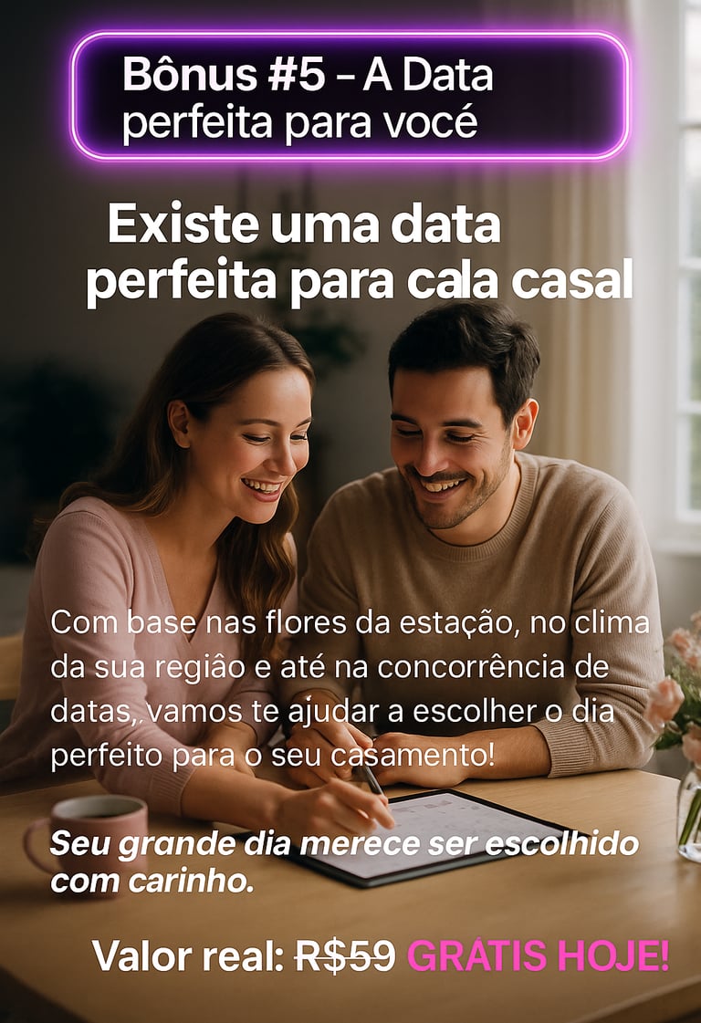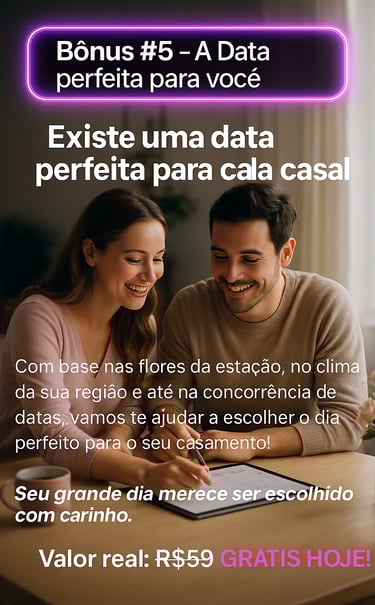 ✅ Data Estratégica: Sabia que dependendo do horário, mês ou dia da semana escolhido para o casamento, você poderá economizar ainda mais?